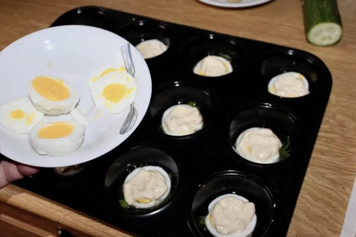Na jajku nałóż kleks majonezu i delikatnie rozprowadź.