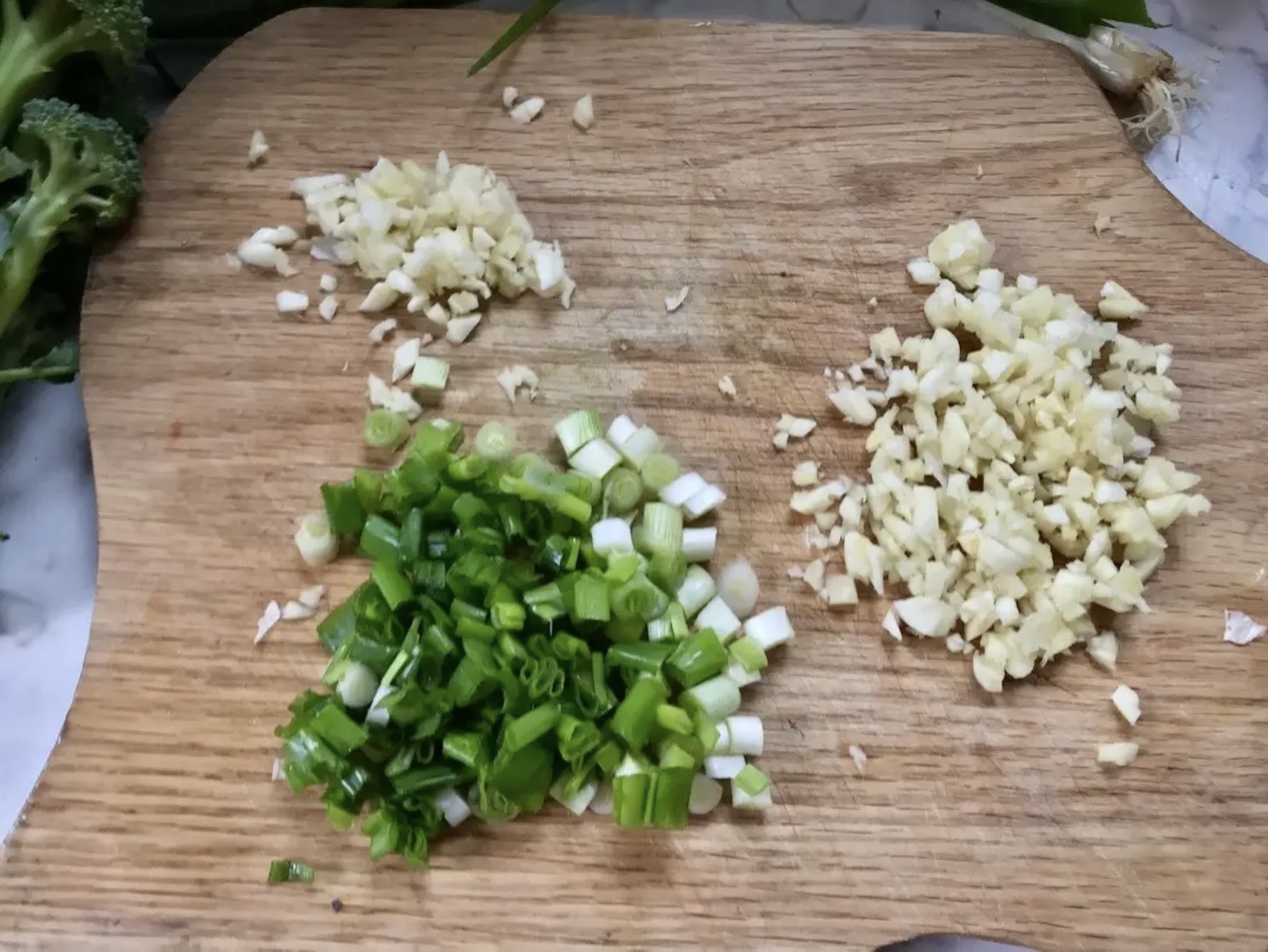 Posiekaj drobno dymkę, zarówno białe, jak i zielone jej części.