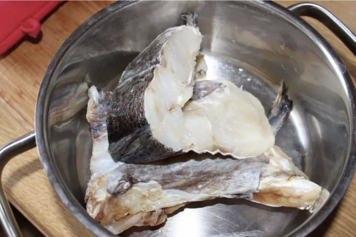 Dorsz suszony: Mocz przez 48 godzin, często zmieniając wodę.
