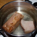 W drugim garnku ugotuj 400 g surowego, wędzonego boczku.
