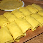 Na patelni usmaż potrzebną ilość naleśników (około 12 sztuk). Zobacz przepis na naleśniki.