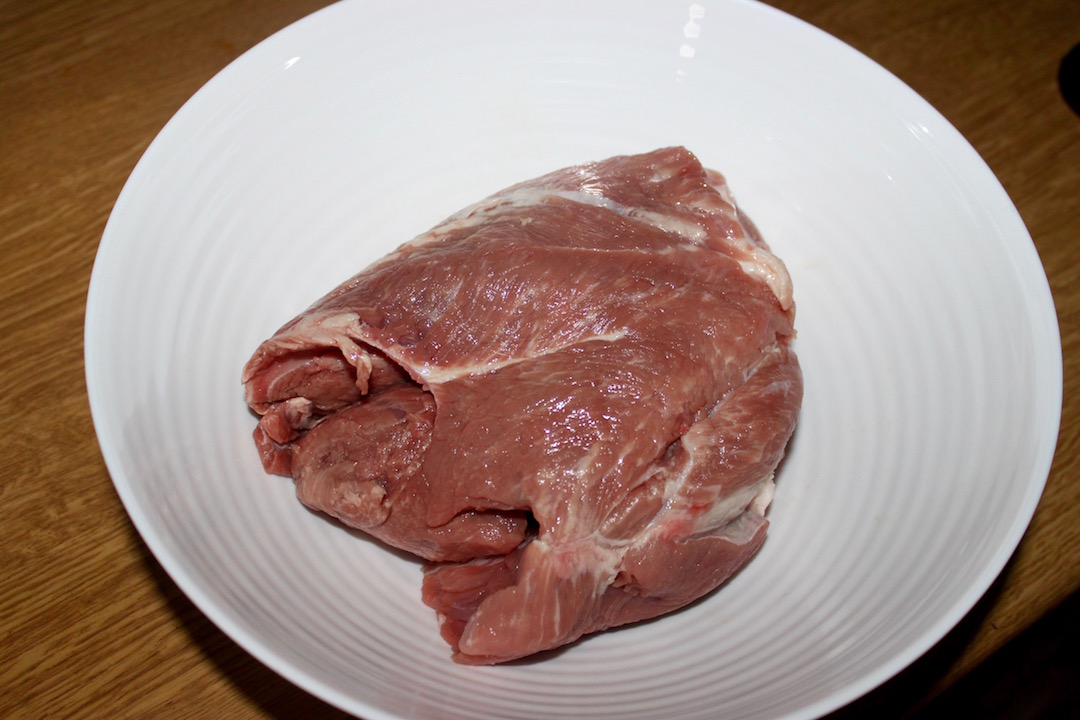 Opłucz 1 kg łopatki wieprzowej, a następnie pokrój mięso w dużą kostkę.