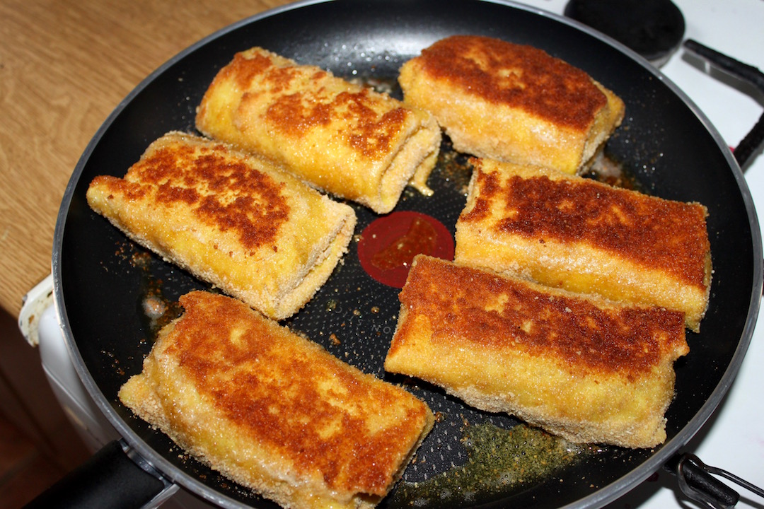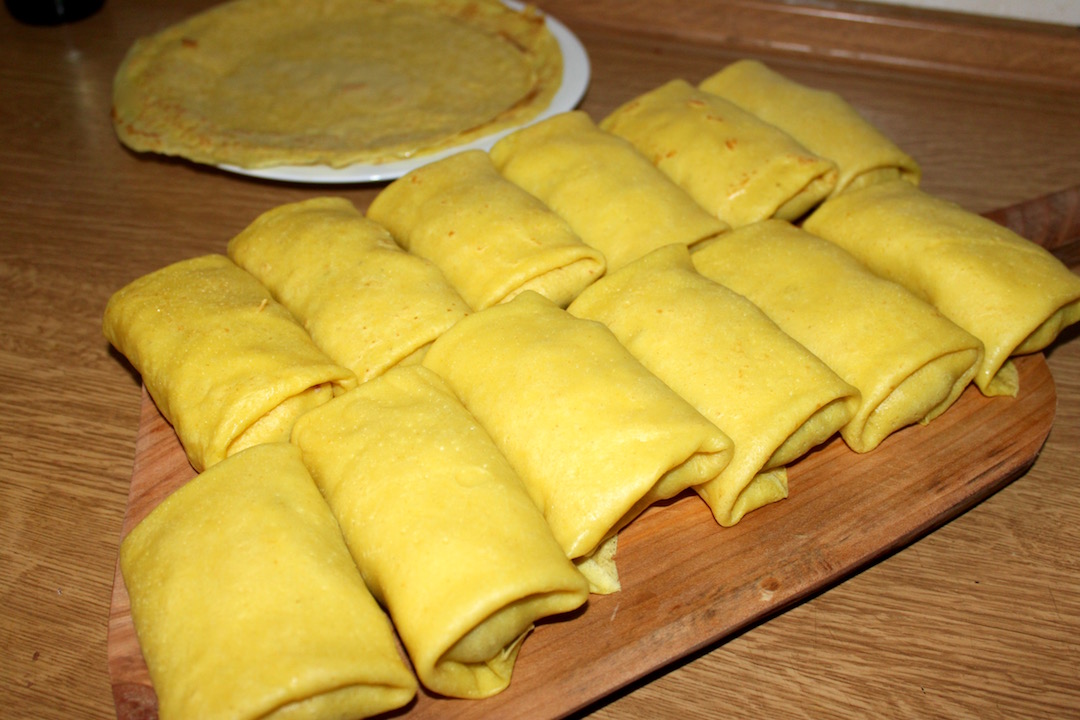 Na patelni usmaż potrzebną ilość naleśników (około 12 sztuk). Zobacz przepis na naleśniki.