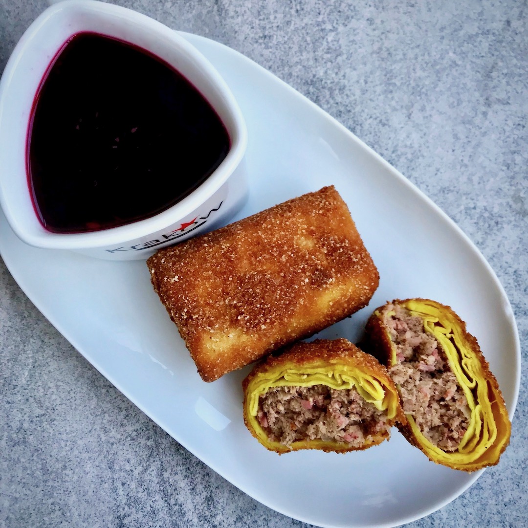 Podanie: Krokiety podawaj z gorącym barszczem czerwonym, najlepiej przyrządzonym na bazie wywaru, który powstał z gotowania boczku.