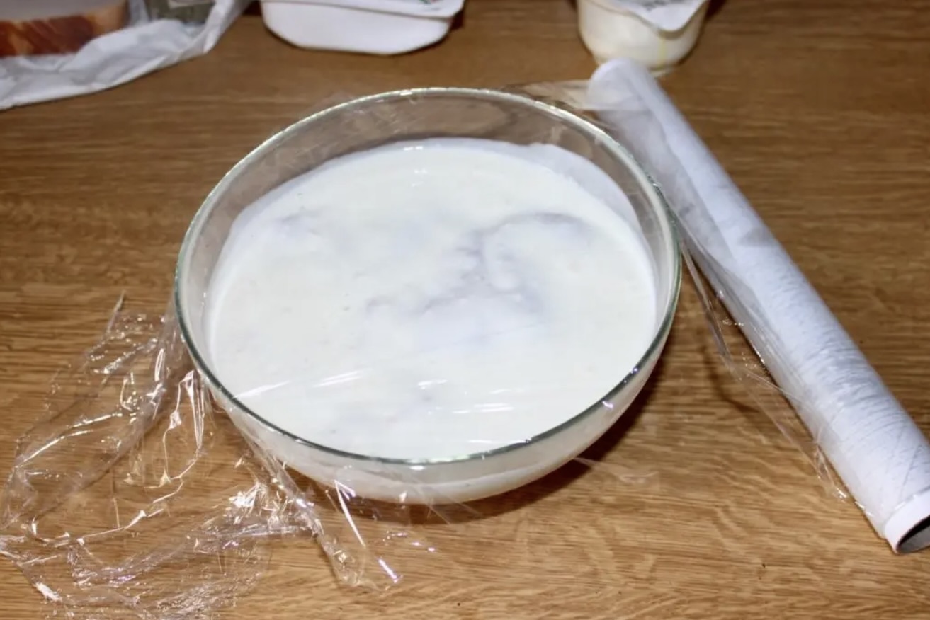 Miskę owiń folią spożywczą i wstaw do lodówki na całą noc lub przynajmniej na godzinę.