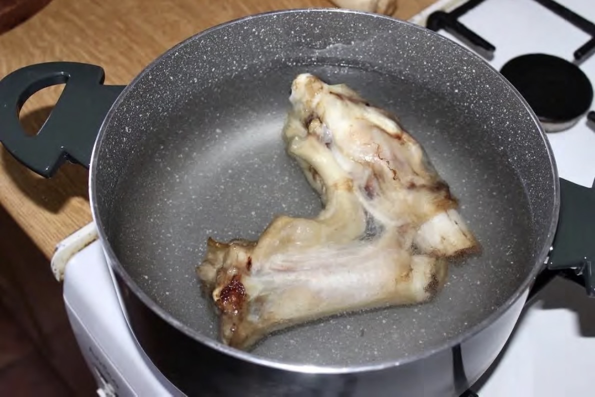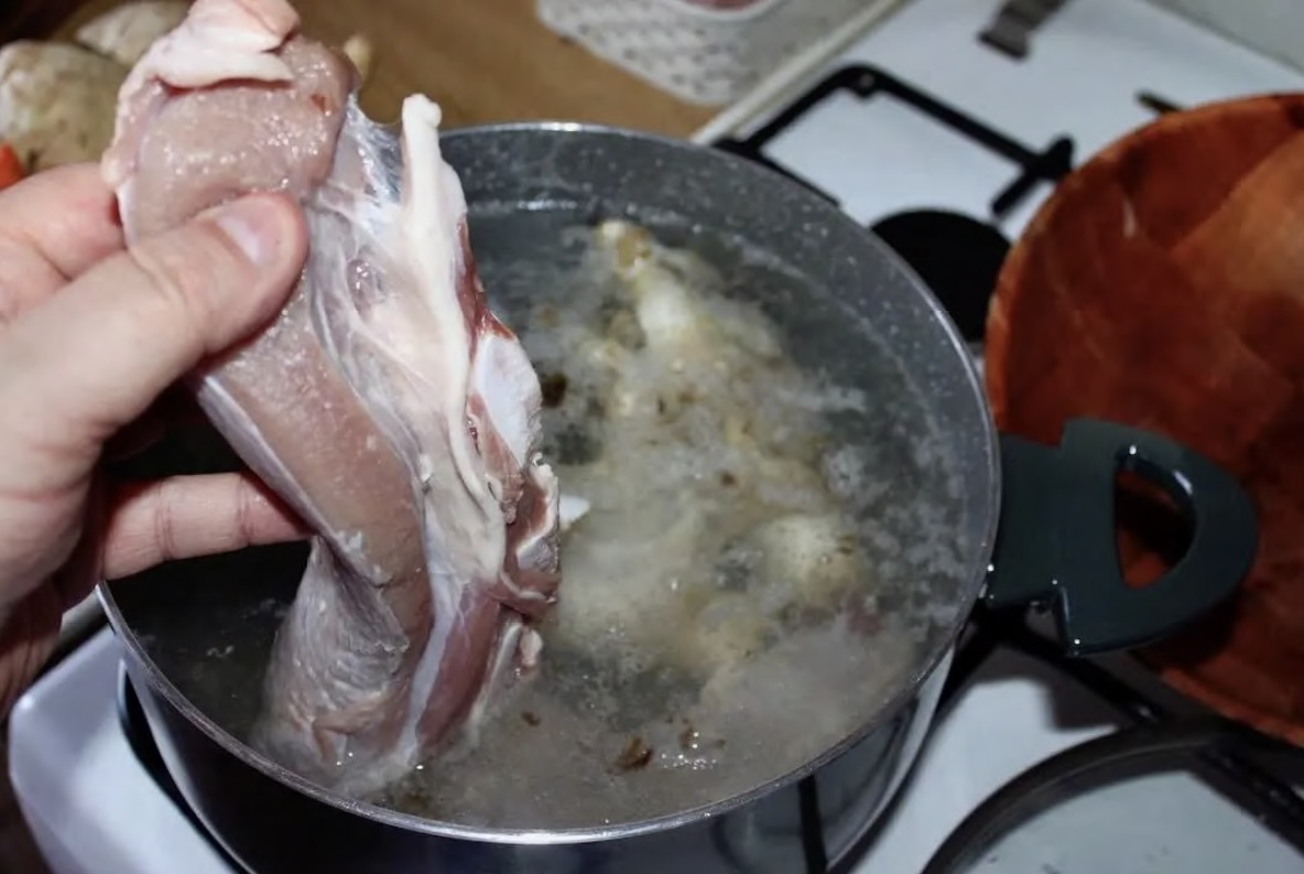 Gotowanie mięsa: Włóż mostek cielęcy, doprowadź do wrzenia, usuń szumowiny i gotuj na wolnym ogniu przez 30 minut.