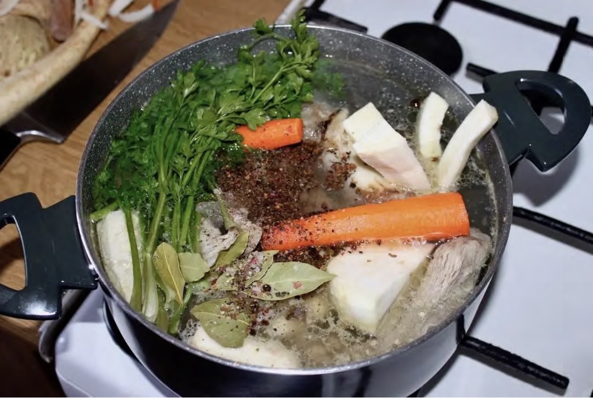 Przygotowanie wywaru: Umyj i opiecz nogę cielęcą w piekarniku nagrzanym do 200°C przez 30 minut, aż się zrumieni. Przełóż do garnka, zalej 2 litrami zimnej wody, a następnie zagotuj.