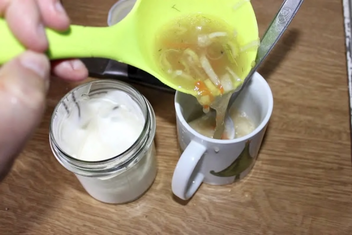 Zabielanie: Zahartuj 3 łyżki gęstej kwaśnej śmietany, wlej do zupy i zagotuj. Dopraw do smaku solą i pieprzem.
