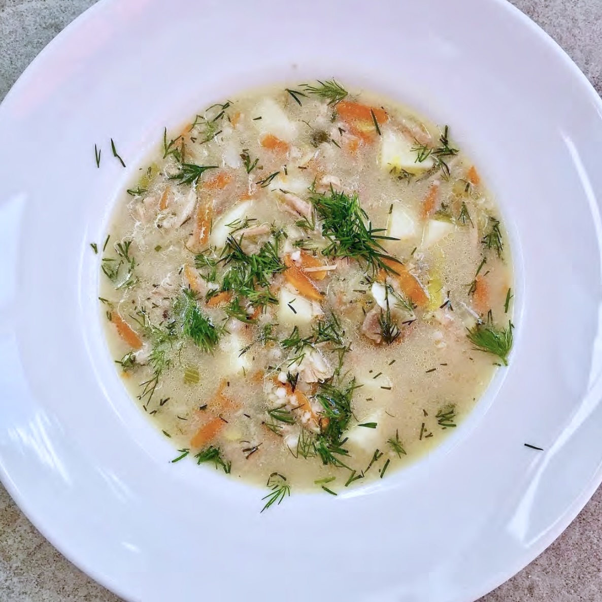 Podanie: Wyłącz gaz, dodaj posiekany koperek oraz pokrojone w kawałki mięso cielęce. Podawaj na gorąco lub w temperaturze pokojowej.