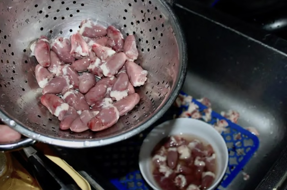 Przygotowanie serc: Serduszka dokładnie oczyść pod bieżącą wodą, usuń błonki, nadmiar tłuszczu i żyły.