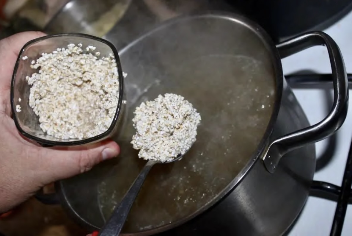 Odmierz kaszę jęczmienną i dobrze ją przepłucz pod bieżącą wodą.