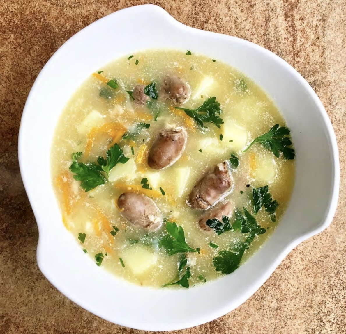 Krupnik na sercach drobiowych to zupa przygotowana na bulionie przyrządzonym z gotowanych serc drobiowych. Zupę podaje się z kaszą jęczmienną, ze startymi warzywami i ziemniakami i doprawia kwaśną śmietaną. Ja wiem, że sporo osób nie jest w stanie przełknąć drobiowych serc, zwłaszcza jeśli najpierw im się przyjrzą. Dla tych osób mam jedną radę. Zrób tak, jak ja i nie przyglądaj się serduchom. Zamknij po prostu oczy i je jedz. Bo tak naprawdę o smak serduszek drobiowych chodzi, mniejsza o wygląd. Fanów krupniku namawiać pewnie nie muszę, bo oni wiedzą, że taki krupnik na sercach drobiowych to prawdziwy rarytas. Ja taki krupnik uwielbiam.
