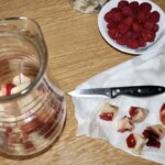Dodanie malin: Maliny ugnieć lekko w dłoniach i dodaj do brzoskwiń.