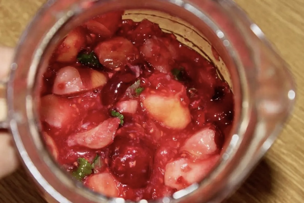 Słodzenie i puszczanie soku: Dodaj miód do owoców. Całość ugnieć drewnianą łyżką w dzbanie, aby owoce puściły soki i połączyły się z miodem.