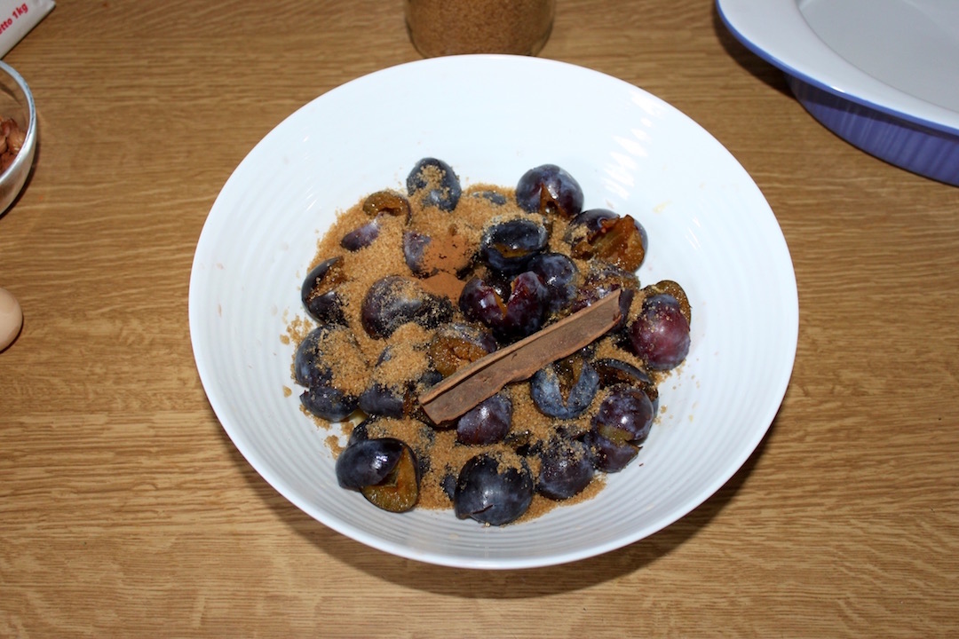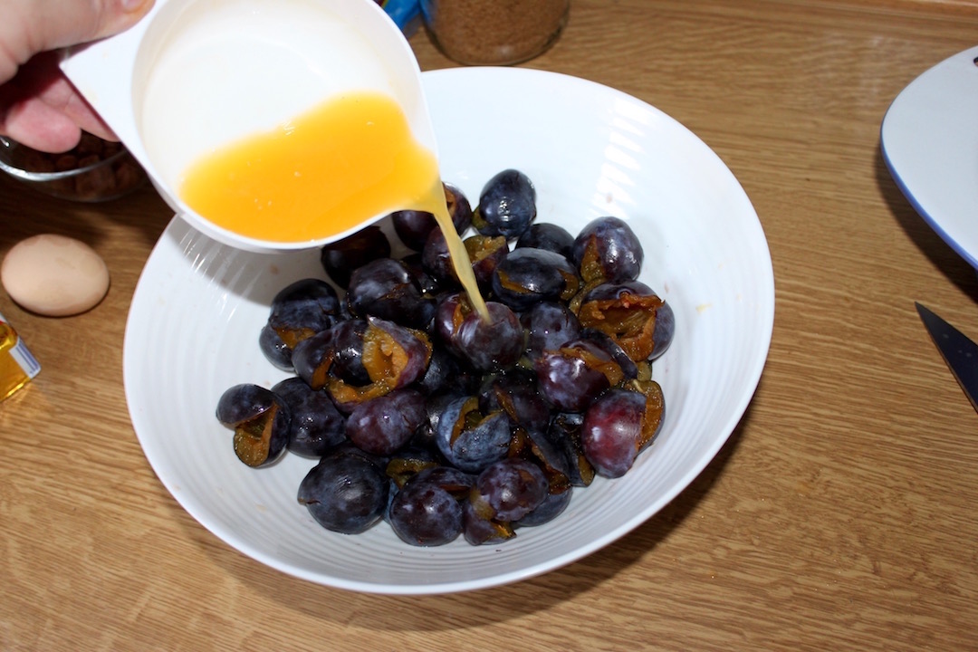 Do naczynia żaroodpornego (ok. 40×15 cm) przełóż śliwki wraz z sokiem.