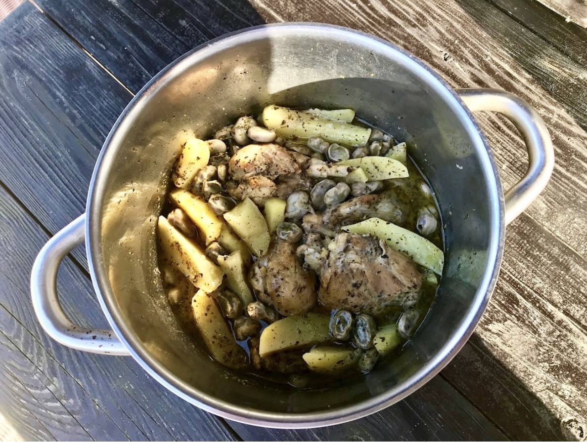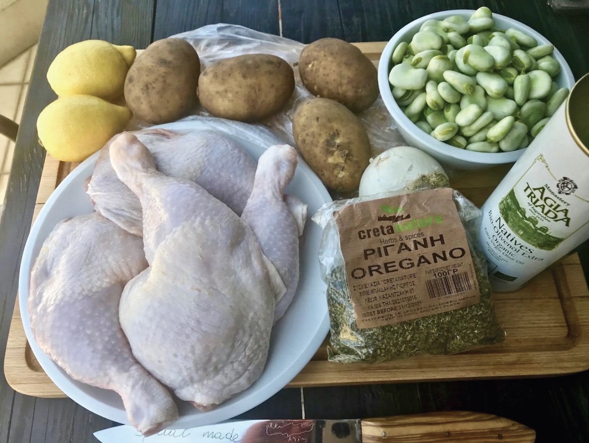 Przepis jest inspirowany sposobem gotowania na Krecie i jest daniem, które najlepiej przygotować w szerokim, niskim garnku, tak aby wszystkie składniki docelowo stanowiły jedną warstwę.