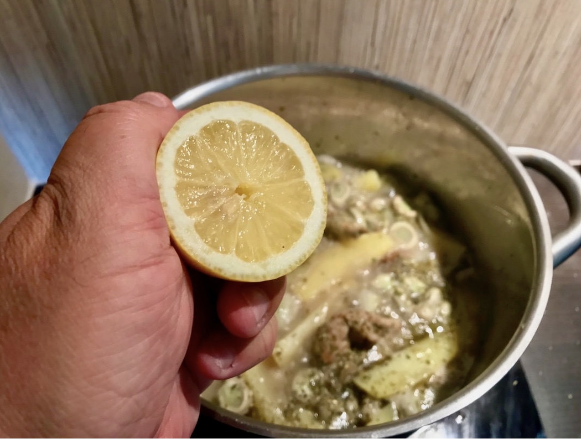Wlej świeżo wyciśnięty sok z jednej dużej cytryny (ma zneutralizować lekką goryczkę bobu).