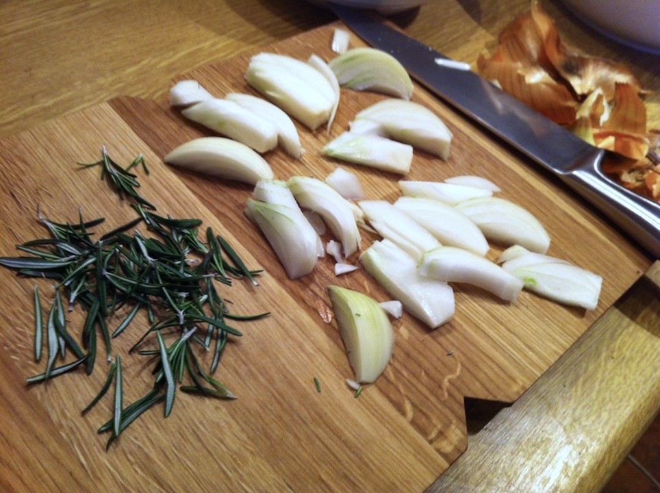 Zioła i przyprawy: kilka gałązek świeżego rozmarynu, sól, pieprz;