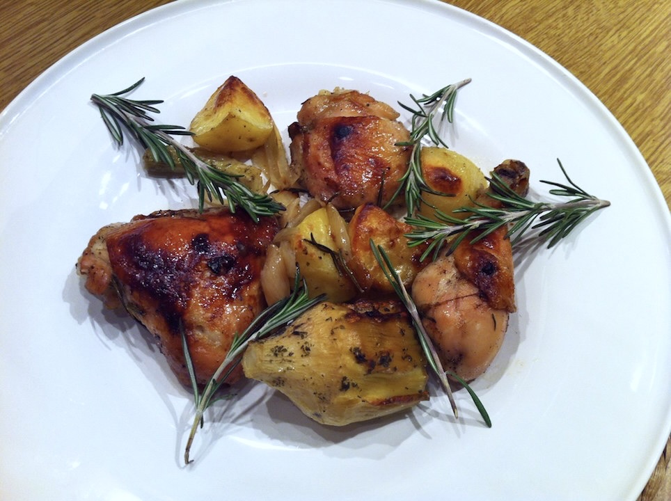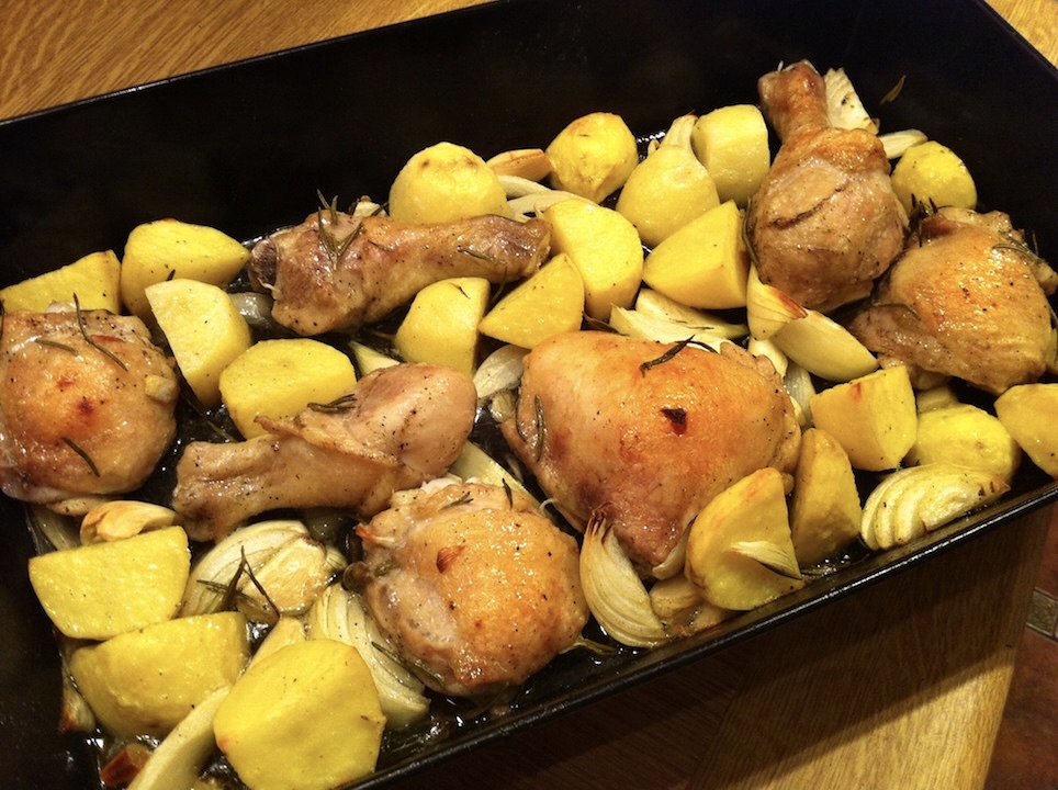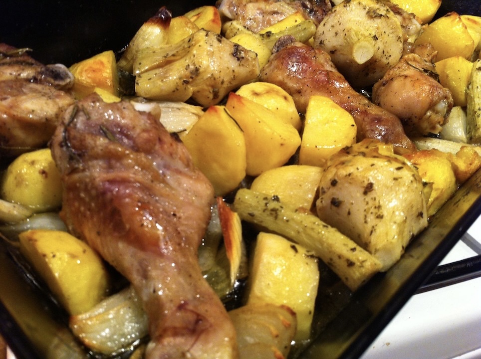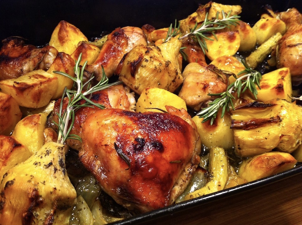 Kurczak pieczony we włoskim stylu, czyli zapraszają ptak, ziemniaki, warzywa, świeże przyprawy oraz jak najlepsza oliwa extra vergine. Jednym słowem kwintesencja włoskiego stylu w najsmaczniejszym wydaniu. To danie wspaniale nadaje się na niedzielny obiad. Przygotowuje się je bardzo szybko, wkłada do piekarnika, a podczas ponad godzinnego pieczenia jest sporo czasu na wypicie aperitifu. Nie tylko pity wówczas aperitif wyostrza apetyt, ale także roznoszący się po całym domu zapach czosnku i rozmarynu. Nie zapomnij do tego dania podać dobrego, włoskiego wina.