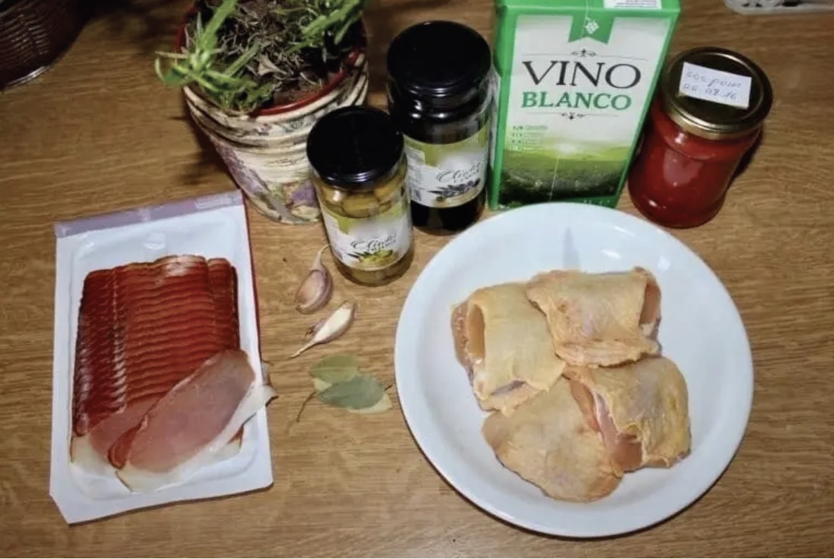 Płyny i inne: kieliszek białego wytrawnego lub półwytrawnego wina, mąka (do oprószenia mięsa), oliwa extra vergine.