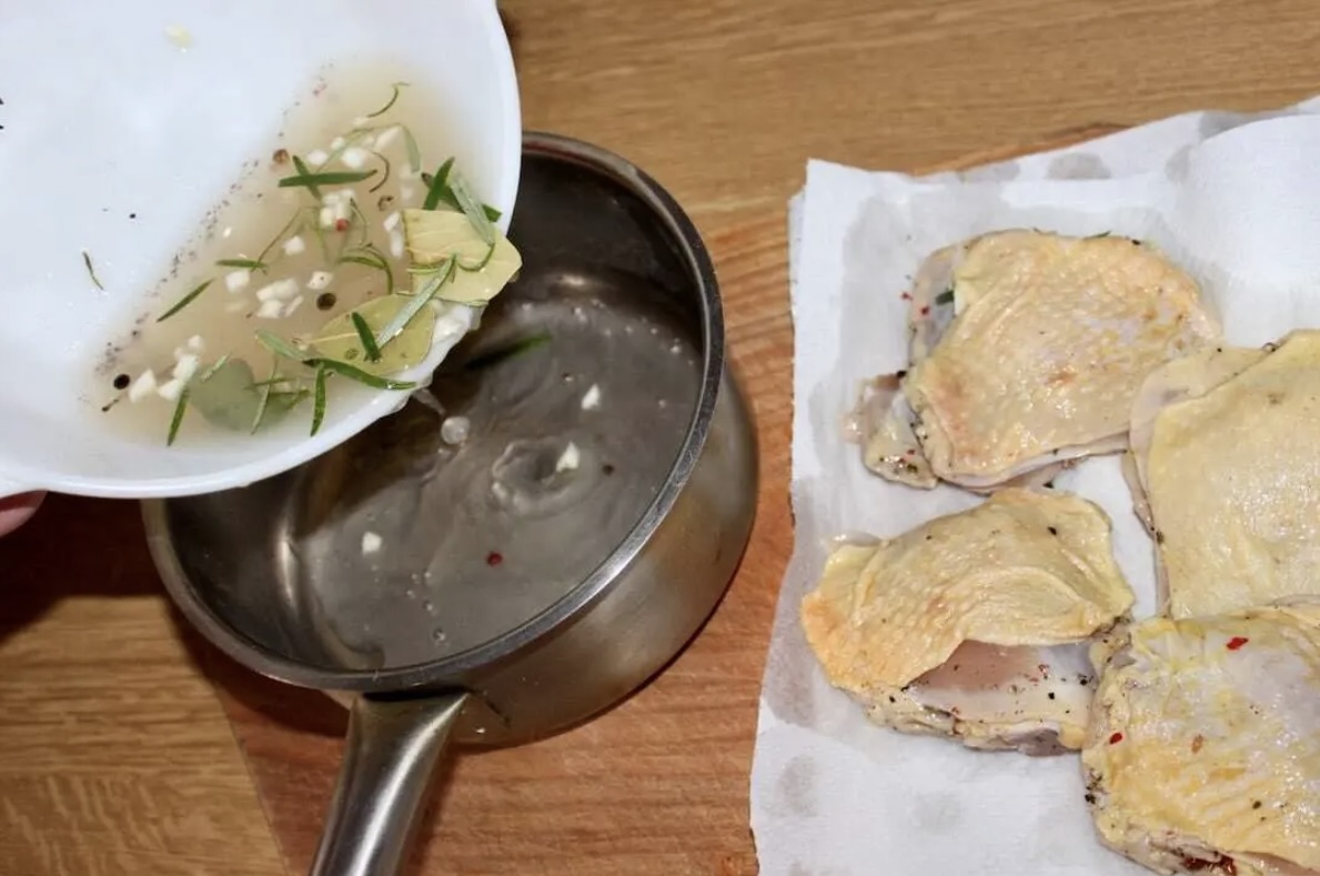 Po zamarynowaniu wyjmij kurczaka, a następnie osusz go papierowym ręcznikiem.