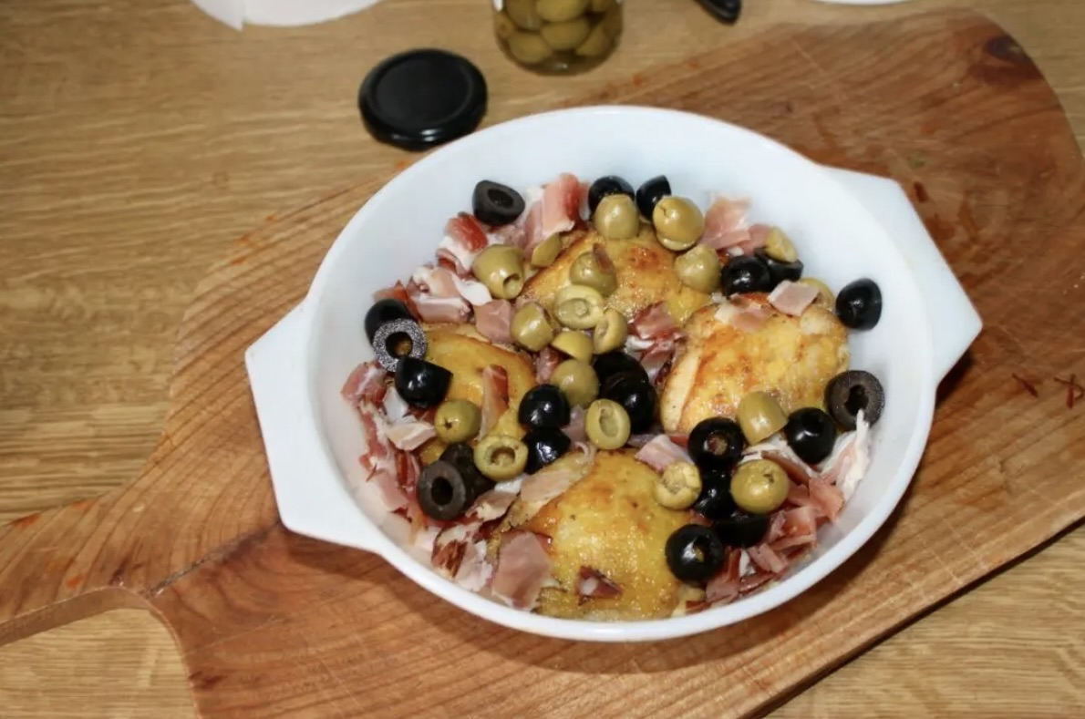 Jest to klasyczne włoskie danie, które w tej wersji charakteryzuje się marynowaniem mięsa w białym winie i późniejszym pieczeniem w aromatycznym sosie pomidorowym z oliwkami i szynką dojrzewającą.