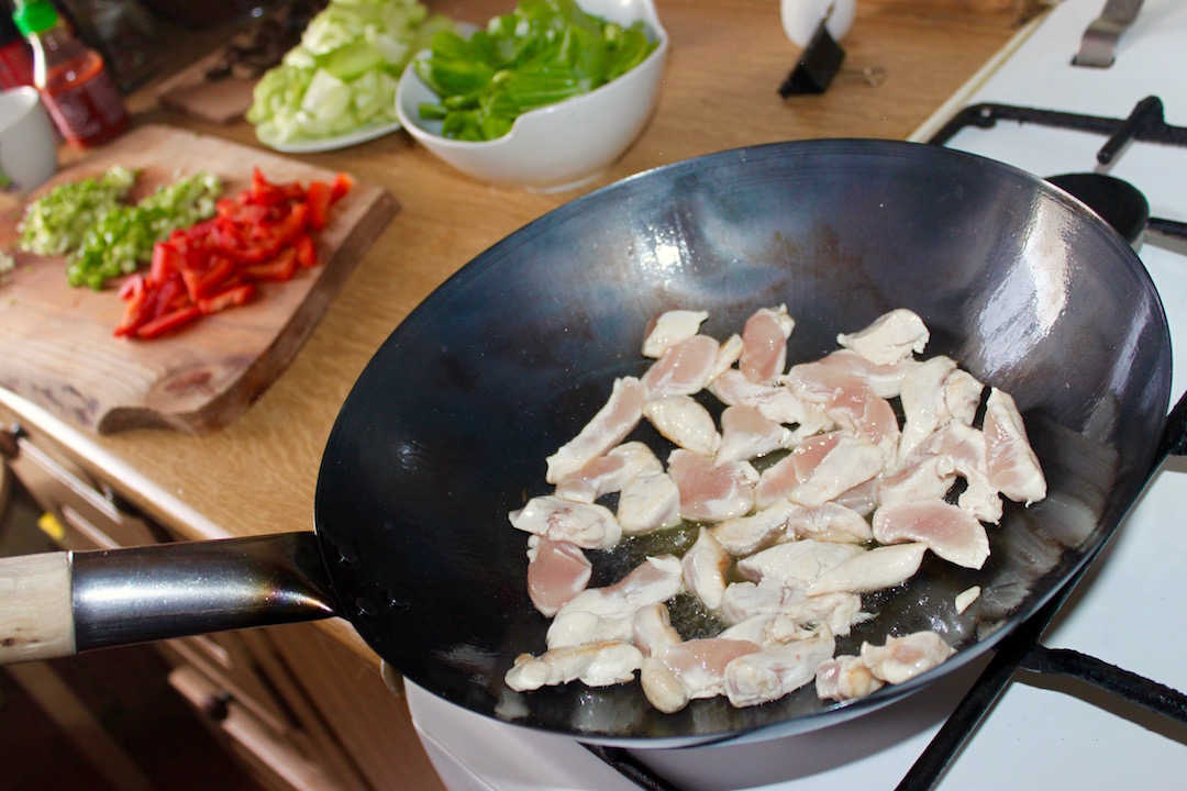 Wskazówka: Kluczem jest krótki czas smażenia na bardzo dużym ogniu, aby kurczak był miękki, a warzywa pozostały chrupiące.