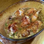 Alzacki kurczak w białym winie z dodatkiem świeżego estragonu i suszonych grzybów to danie wytworne, choć nieskomplikowane. Każdy smakosz wina doceni smak rieslinga pochodzącego z pięknej Alzacji. Doskonały bukiet, subtelny smak. Wino to idealne na letnie dni, doskonałe również do dań z drobiu przez cały rok. W przepisie poniżej rieslinga prosto z Alzacji dodaje się do marynaty, w której kurczaka się następnie dusi. Na koniec buduje się sos, który podbity słodką śmietanką i świeżym estragonem wynosi smak zwykłego kurczaka na piedestał. Zachęcam, bo warto.