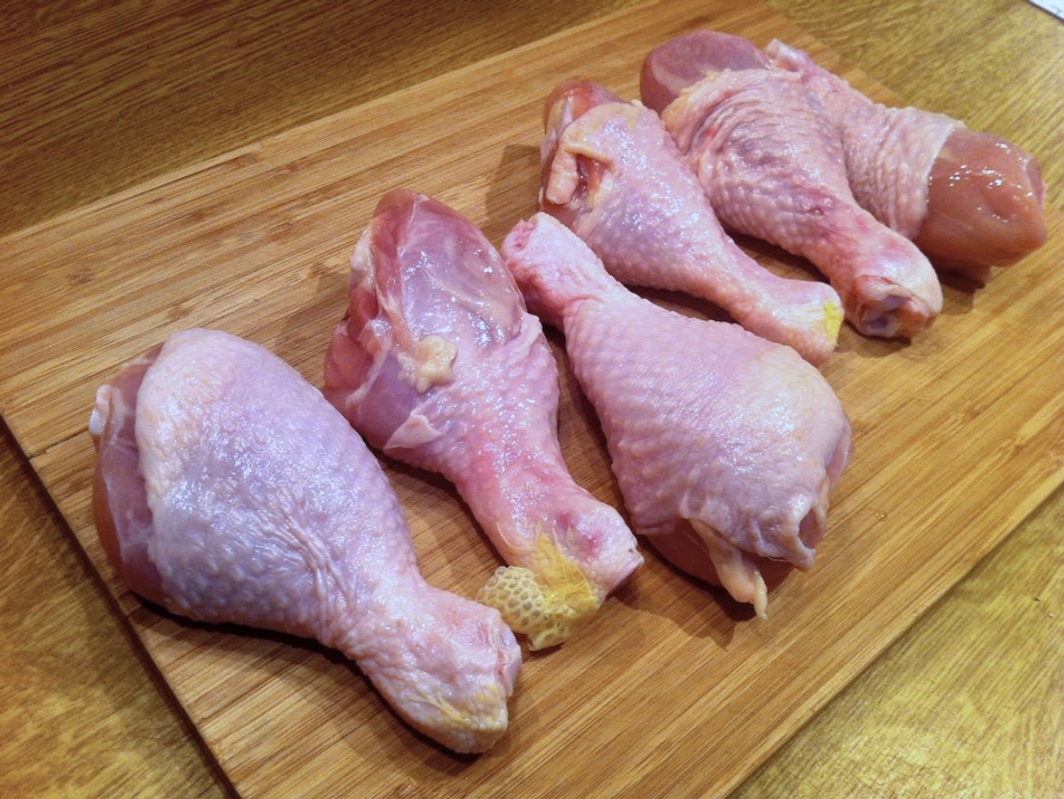 Z podudzi kurczaka odetnij nadmiar skóry i tłuszczu. Umyj i dobrze osusz ręcznikami papierowymi.