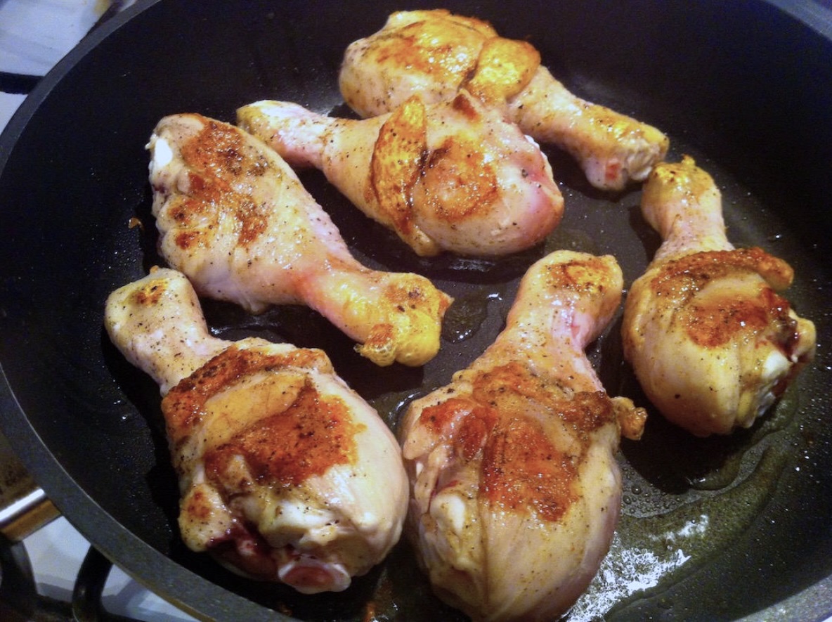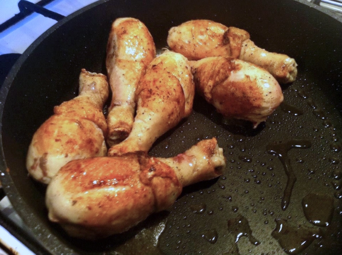Włóż do naczynia zrumienione wcześniej podudzia z kurczaka.