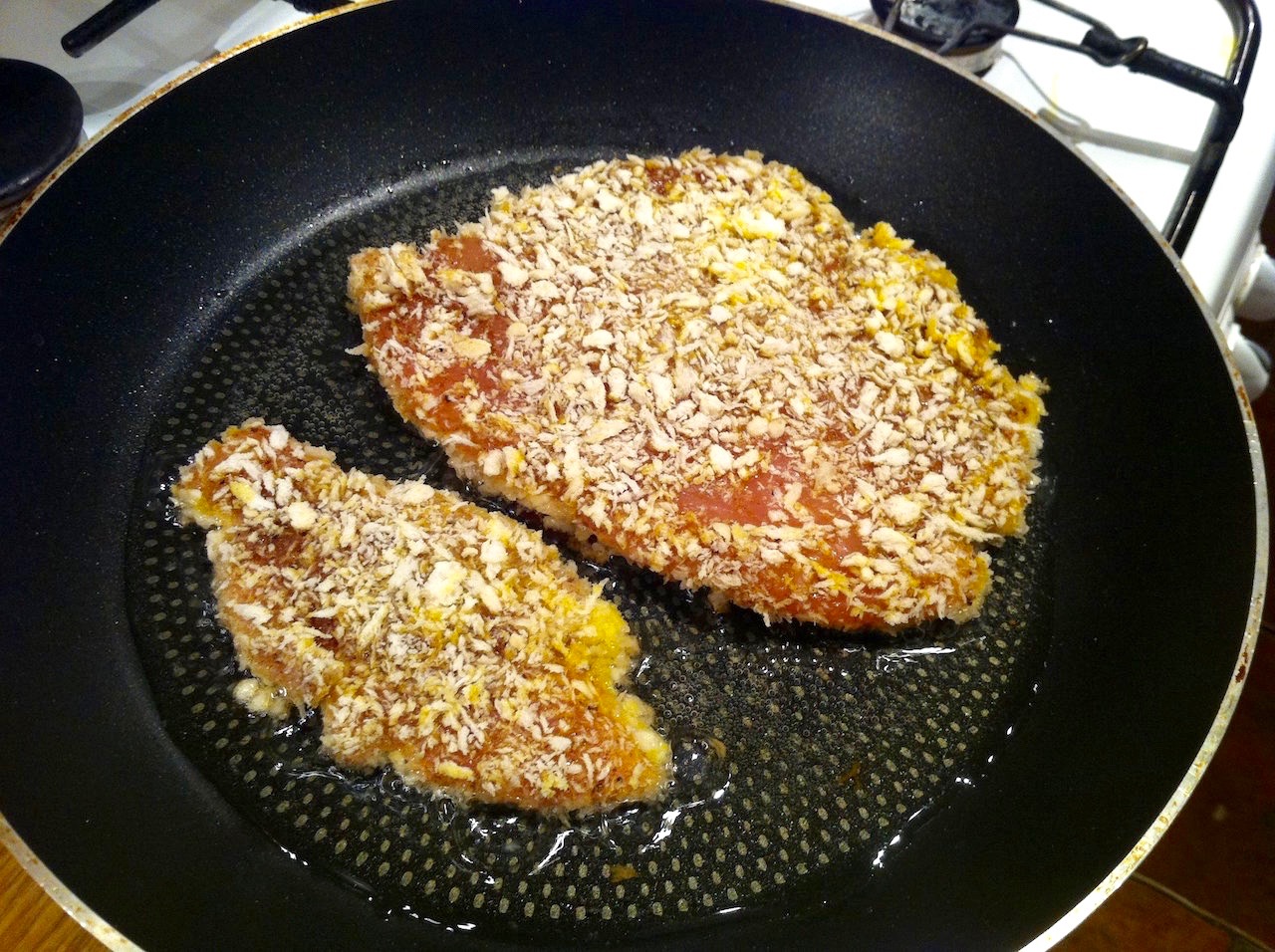 Smaż kotlety na patelni z rozgrzaną, dość sporą ilością oleju arachidowego.