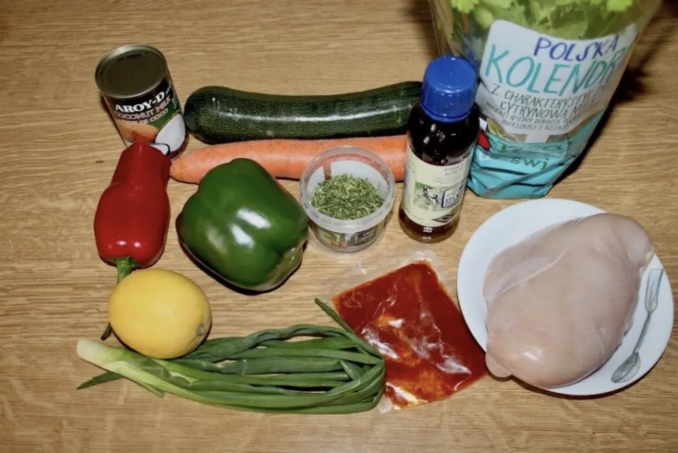 Kurczak w sosie curry z warzywami i kolendrą