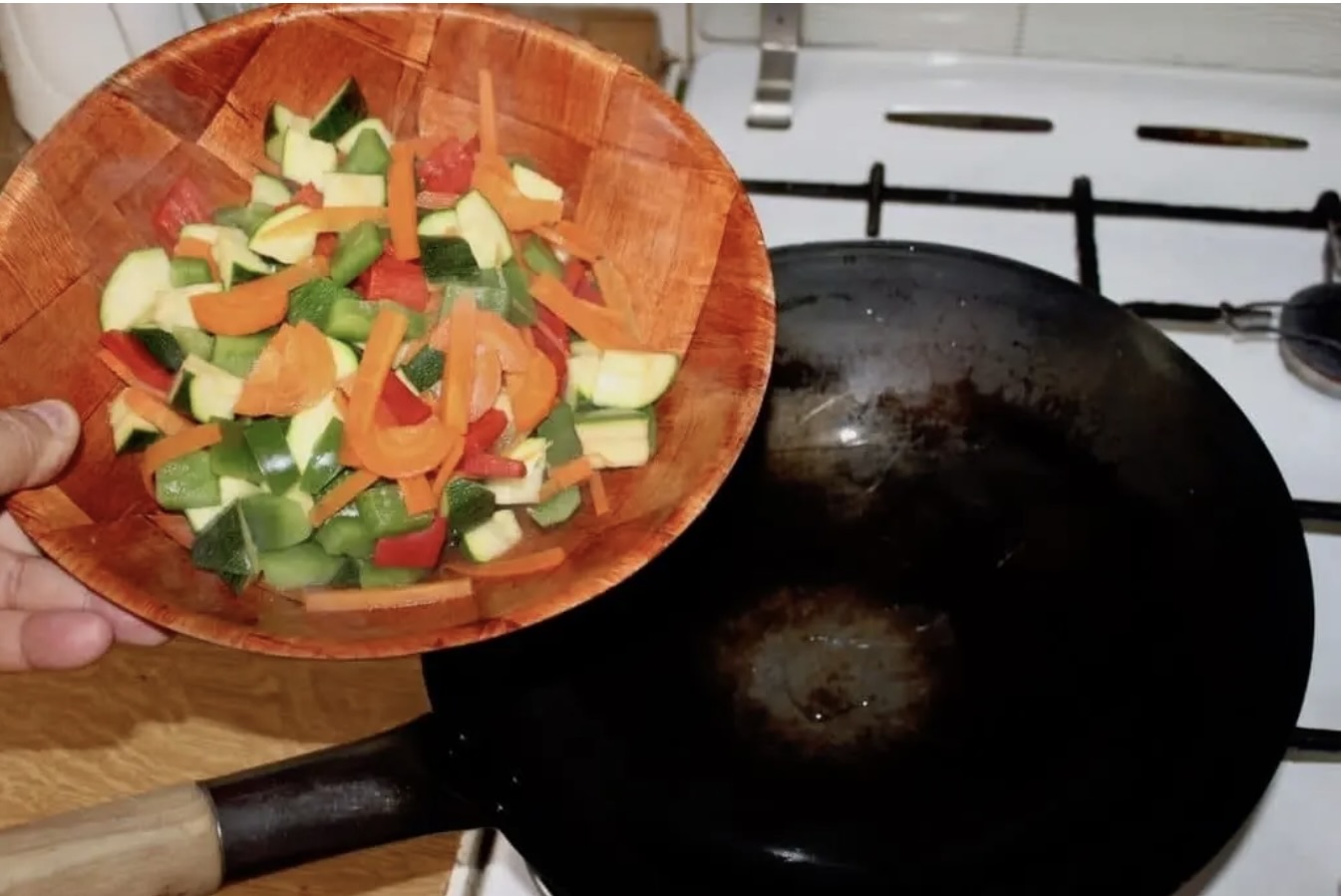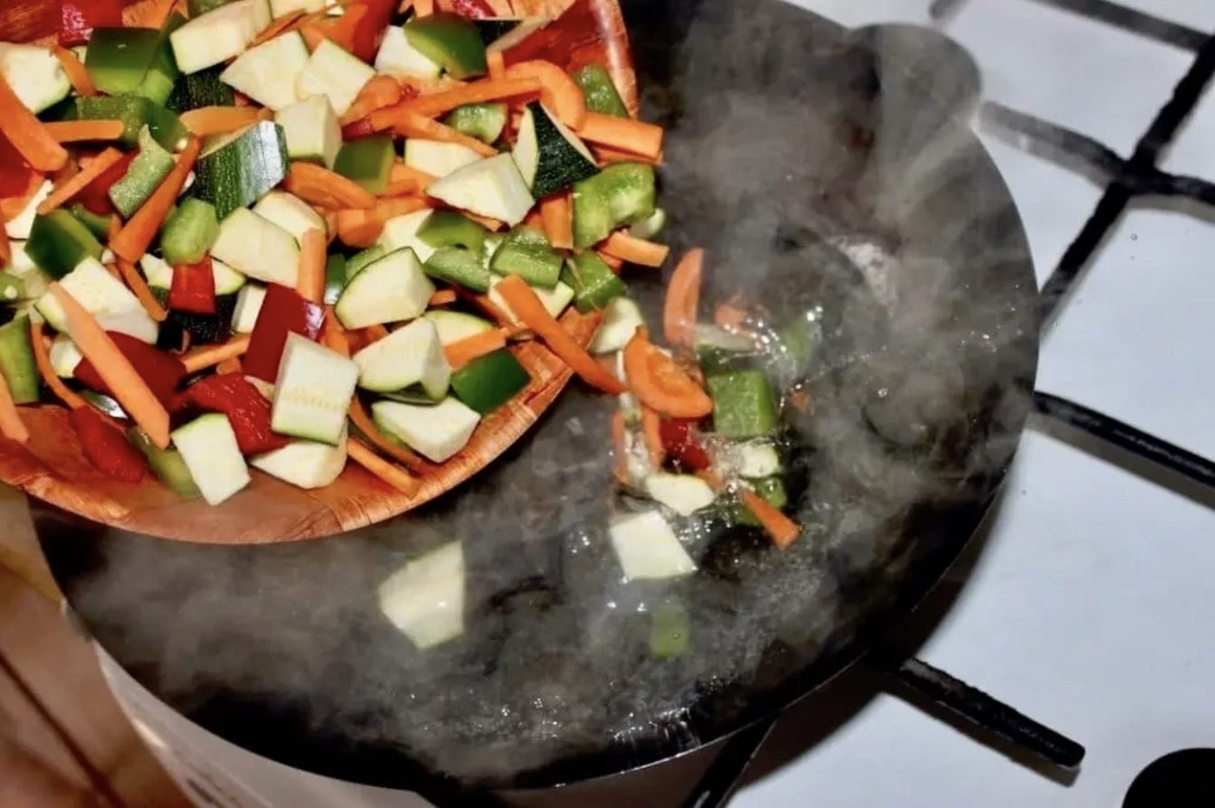Odcedź warzywa i odłóż na bok. Woka dokładnie osusz.