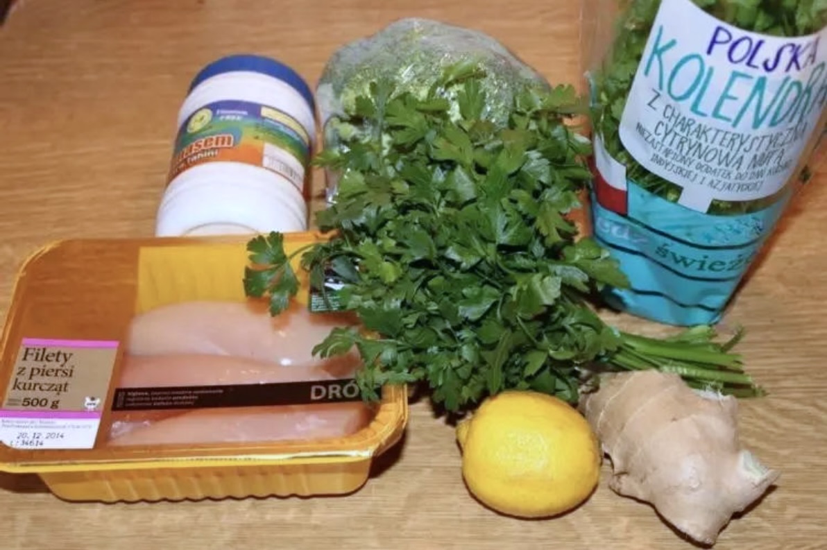 Podanie: Wyjmij kurczaka z bulionu, pokrój go w plastry i ułóż na talerzu. Całość obficie polej przygotowanym sosem imbirowym. Podawaj z ugotowanymi brokułami.