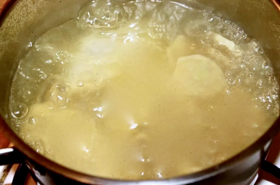 Gotowanie kurczaka: Mięso oczyść i opłucz. W garnku zagotuj bulion drobiowy. Połowę świeżego imbiru pokrój w plastry i wrzuć do bulionu razem z piersiami z kurczaka. Gotuj przez około 10 minut.