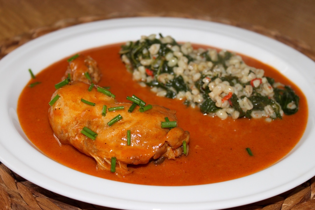 Kurczak w sosie paprykowym to ważne danie kuchni austriackiej. Zwie się ono tam Paprikahendl. Rzecz jasna jego korzenie sięgają monarchii austrowęgierskiej. Alians z Węgrami wyraźnie odcisnął swoje piętno na kuchni austriackiej. Wszechobecne są więc w niej gulasze oraz stosowanie papryki w wielu daniach. Oczywiście występują drobne niuanse, które jednak tym razem nas interesować nie będą. Co najważniejsze Austriacy nauczyli się dobrze gotować na węgierską modłę, czego to danie jest dowodem. Jest naprawdę pysznie.
