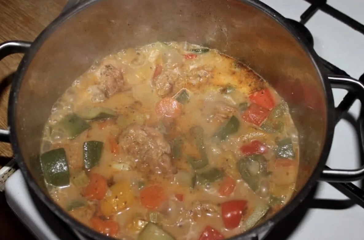 Gotuj pod przykryciem na małym ogniu przez około 30-40 minut, aż mięso zmięknie.