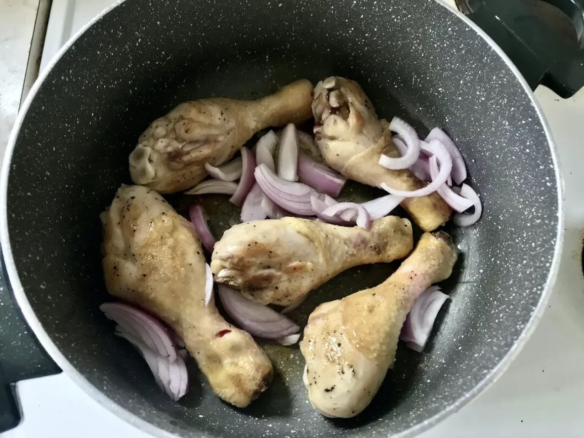 Przygotowanie mięsa: Podudzia umyj i dokładnie osusz ręcznikiem papierowym. Oprósz solą oraz świeżo zmielonym pieprzem.