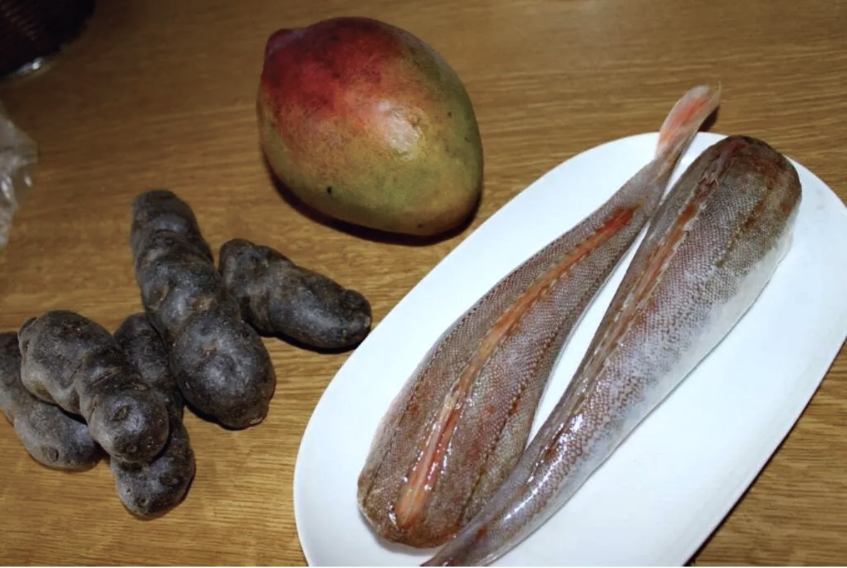 Kurek pieczony w zestawieniu, jak poniżej jest ciekawym daniem. Kurek to ryba, na którą polowałem od dłuższego czasu. Tenże kurek pieczony stał się przepyszną i niedrogą potrawą. Bardzo, bardzo go polecam, jeśli masz go gdzie kupić u siebie zrób to danie, bo jest po prostu świetne. Fioletowe ziemniaki, które podałem do tego dania gotują się około 25 minut i smakują po prostu jak ziemniaki. Kurek pieczony jest poza konkurencją. No i do tego salsa z mango. Słodka, lekko pikantna i cytrynowa. Super obiad, jak dla mnie.