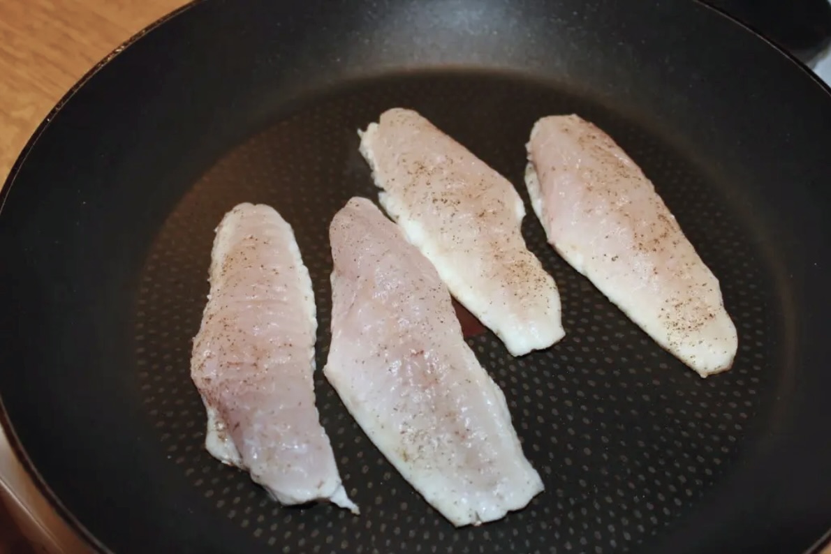 Ryba: * Wytnij filety z kurka, zwracając szczególną uwagę na usunięcie drobnych ości (najlepiej użyć do tego szczypiec).