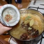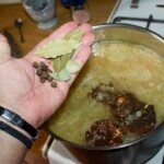 Dodanie reszty przypraw: Do garnka wlej namoczone grzyby wraz z wodą, w której się moczyły. Dodaj liście laurowe, ziele angielskie, a także łyżeczkę zmiażdżonego w moździerzu pieprzu. Następnie gotuj na wolnym ogniu.