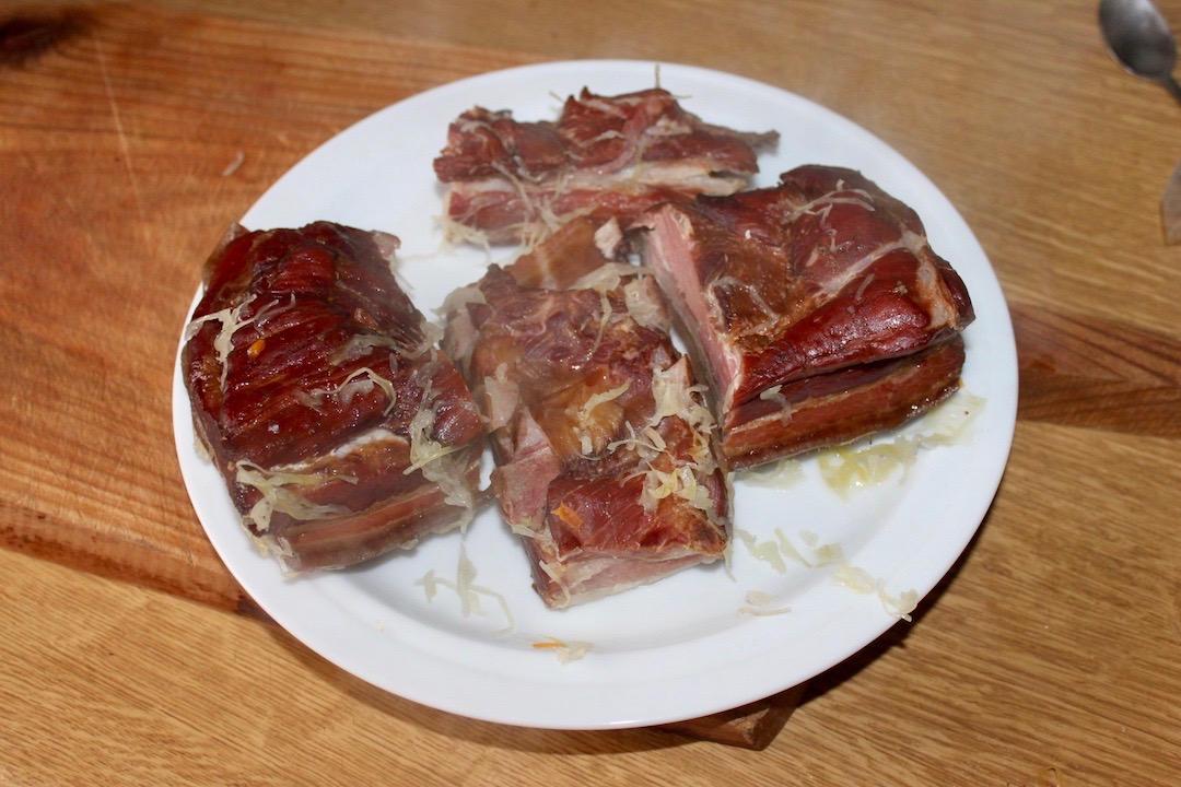 400 gramów żeberek wędzonych lub wędzonych kości ze schabu