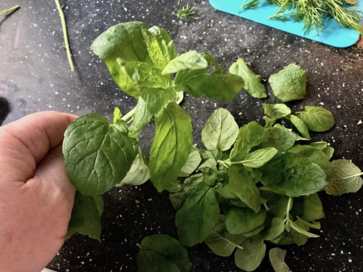 Zioła: spory pęczek koperku, pęczek świeżej miętny, natka pietruszki