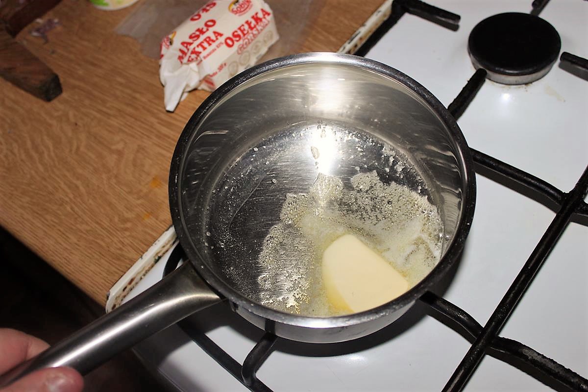 Warzywa i dodatki: 1 mała cebula, 2–3 ząbki czosnku, 1 łyżka masła, 1 łyżka oliwy lub oleju