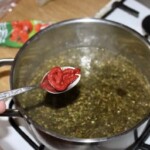 Sos: W garnku zagotuj około pół litra gorącej wody. Dodaj wszystkie suszone zioła (oregano, bazylia, zioła prowansalskie), koncentrat pomidorowy, przeciśnięty czosnek, słodką i ostrą paprykę, sól, pieprz oraz pół opakowania przyprawy do kuchni włoskiej. Wymieszaj.