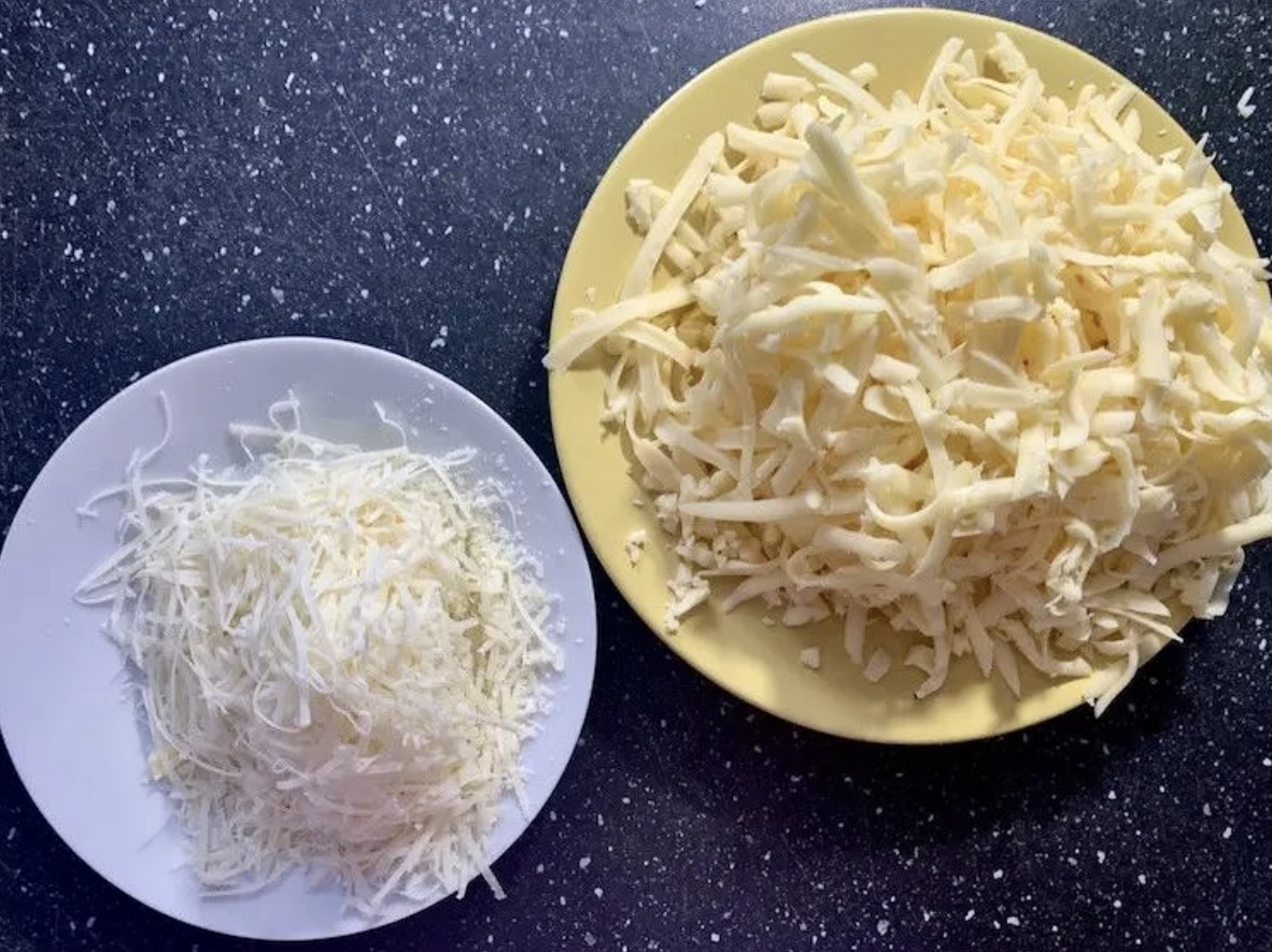 Ser: Zetrzyj sery (Gouda/Edam + pecorino/parmezan).