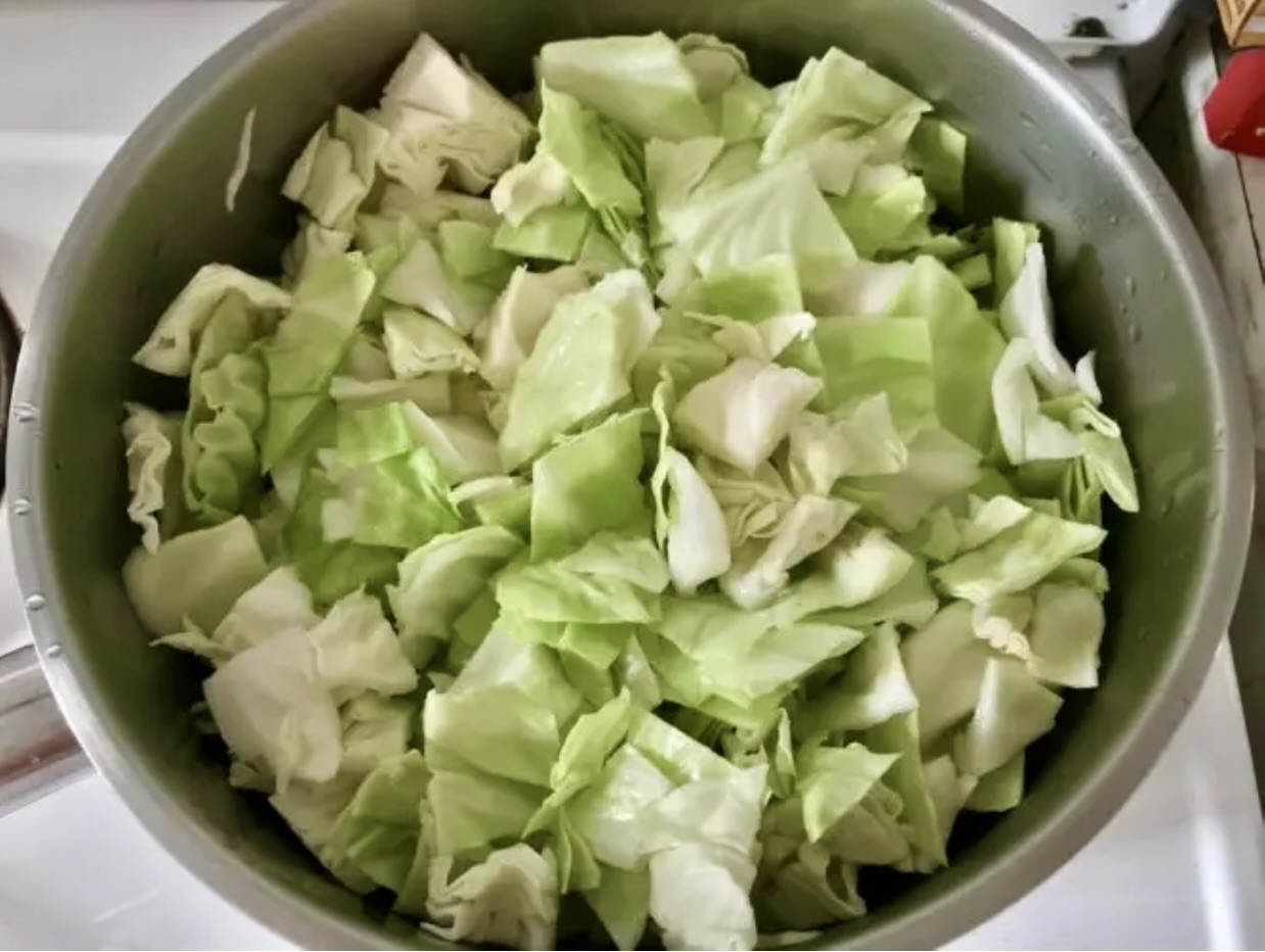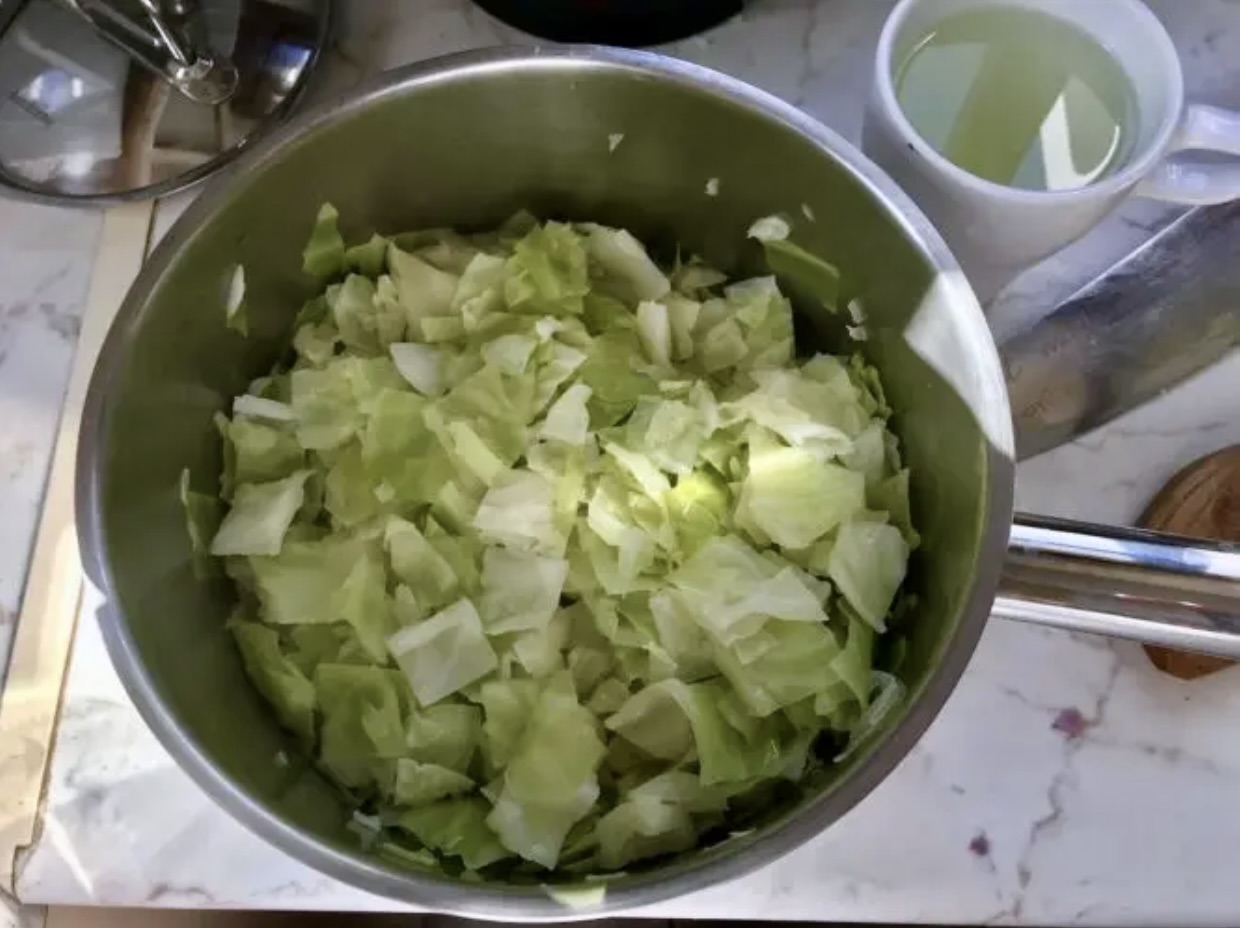 Kapusta: Kapustę przekrój na pół, pozbaw głąba, a następnie poszatkuj na kawałki o wielkości i kształcie zbliżonym do makaronu łazanki. Kapustę przepłucz zimną wodą i przełóż do garnka. Zalej wrzątkiem, dodaj łyżeczkę soli i gotuj pod przykryciem na wolnym ogniu aż do miękkości. Ugotowaną kapustę odcedź i odstaw na bok.