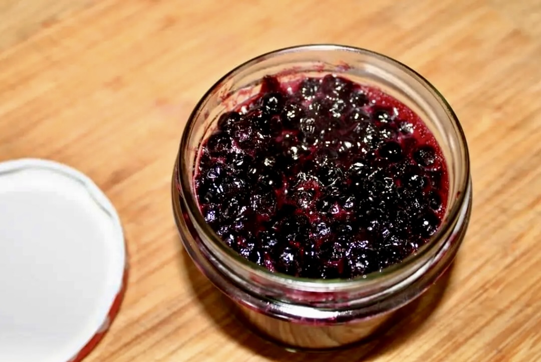 Napełnianie słoików: Do każdego słoika wlewaj uzyskany syrop z borówkami i mocno zakręcaj słoik.