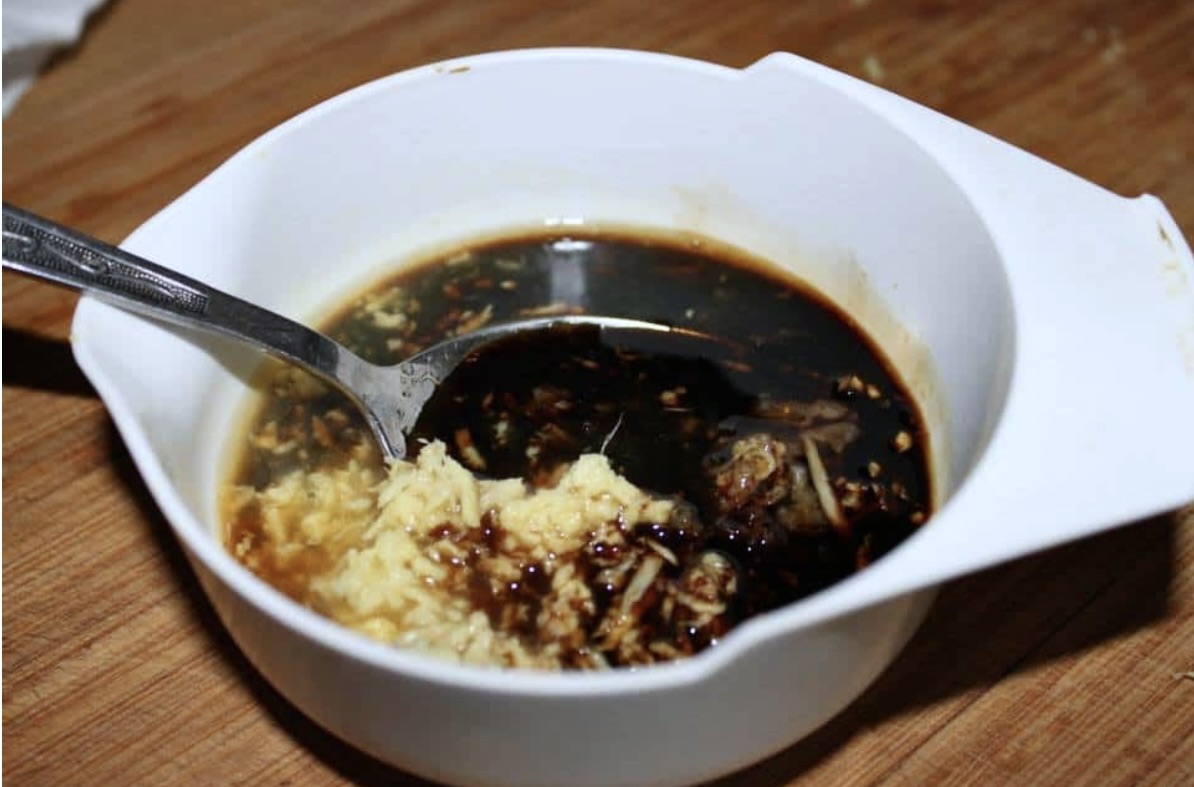 Sos sojowy: 3 łyżki (autor poleca ten o obniżonej zawartości soli)