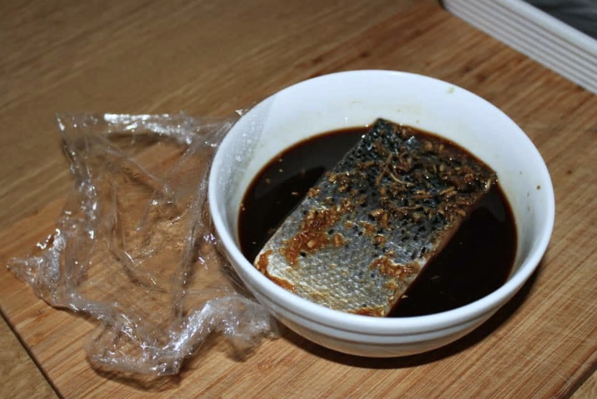 Pieczenie: Wyjmij rybę i przełóż do naczynia żaroodpornego (wyłożonego folią aluminiową posmarowaną olejem). Piecz w temperaturze 200°C przez 10-15 minut (zależnie od grubości fileta). Ważne, by ryba pozostała soczysta w środku.